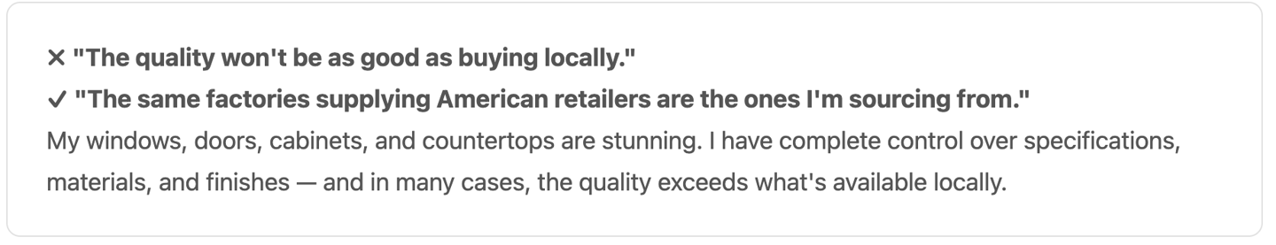 The moment I realized that the same factories supplying American retailers were accessible directly — and that I could order from them myself — everything changed. I saved $47,000 on windows alone.